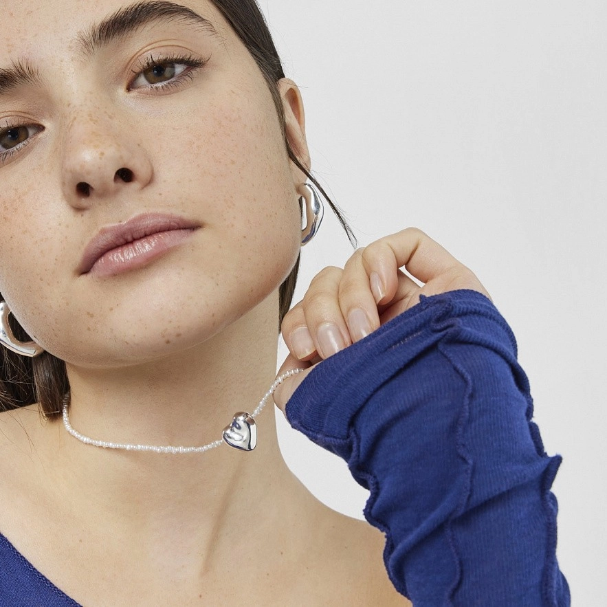 Намисто TOUS Tabit із культивованими перлами та мотивом серця зі срібла. Розмір культивованих перлин: 2-2,5 мм. Розмір мотиву серця: 16 мм. Довжина намиста: 42 см. Застібка-пусет.