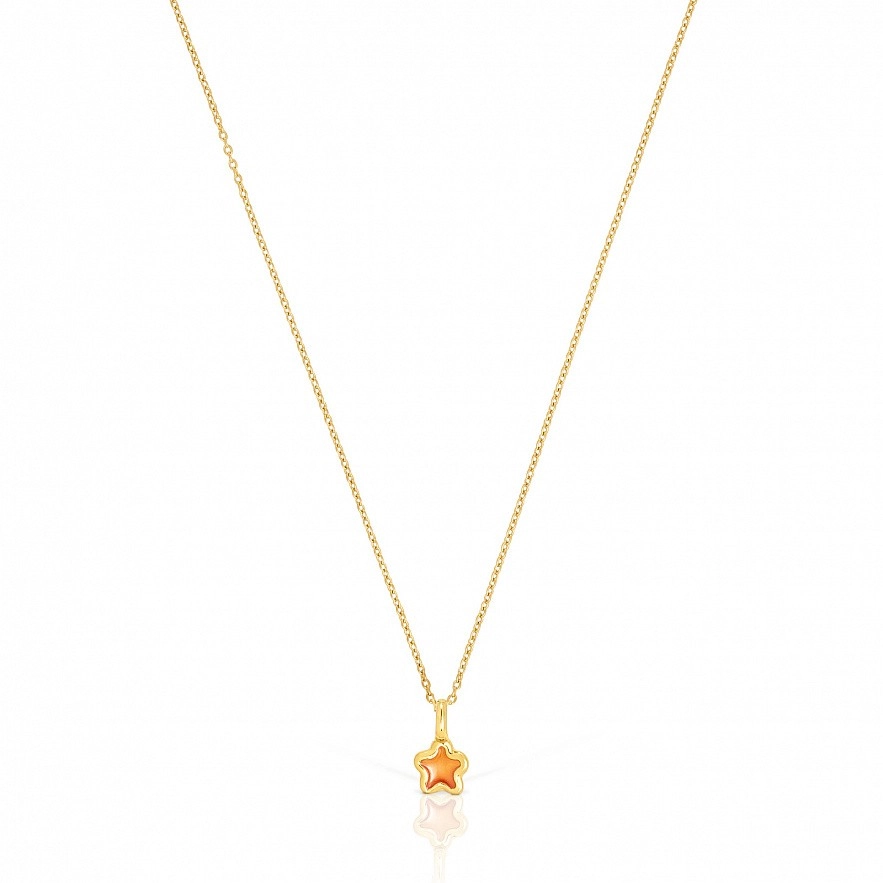 Ланцюг і кулон TOUS Gregal зі срібла 925 проби з покриттям Vermeil та з мотивом кулона-зірки з помаранчевою емаллю всередині та силуетом зі срібла 925 проби з покриттям Vermeil . Розмір кулона: 7x7,2мм. Довжина ланцюга: 40-45см. Пружинна застібка-кільце.