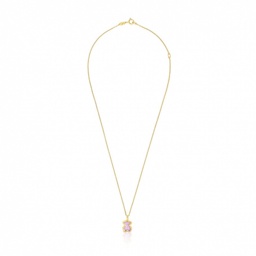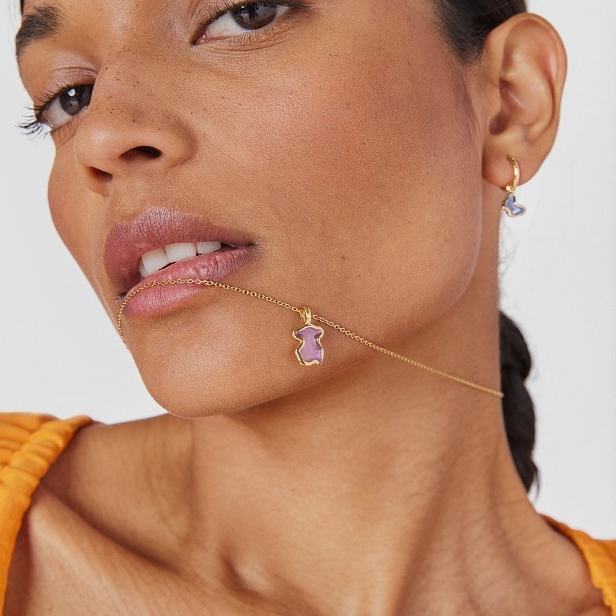 Ланцюг і кулон TOUS Gregal зі срібла 925 проби з покриттям Vermeil та з мотивом кулона-ведмедика з бузковою емаллю всередині та силуетом зі срібла 925 проби з покриттям Vermeil . Розмір кулону: 11,2 х 9,3 мм. Довжина ланцюга: 40-45см. Пружинна застібка-кільце.