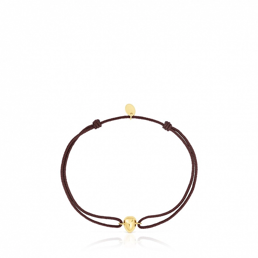 TOUS Balloon браслет із краплеподібним мотивом із 18-каратного золота та коричневим шнуром. Розмір мотиву: 8 x 5,86 мм. Максимальна довжина браслета: 20см. Регульоване закриття шнура.