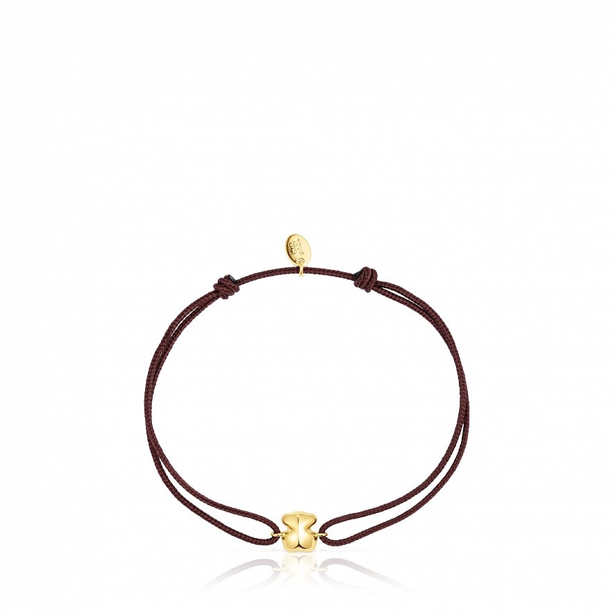 TOUS Balloon браслет із ведмедиком із 18-каратного золота та коричневим шнуром. Розмір мотиву: 8x6,64мм. Максимальна довжина браслета: 20см. Регульоване закриття шнура.