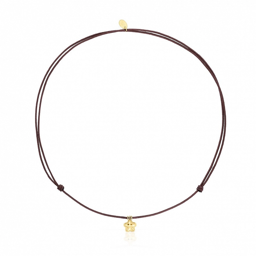 Намисто TOUS Balloon з квітковим мотивом із 18-каратного золота та коричневим шнуром. Розмір мотиву: 8x8,24мм. Максимальна довжина намиста: 65см. Регульоване закриття шнура.