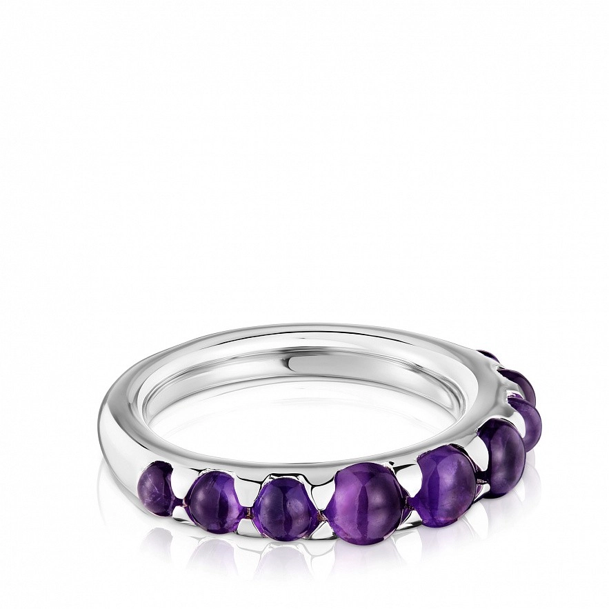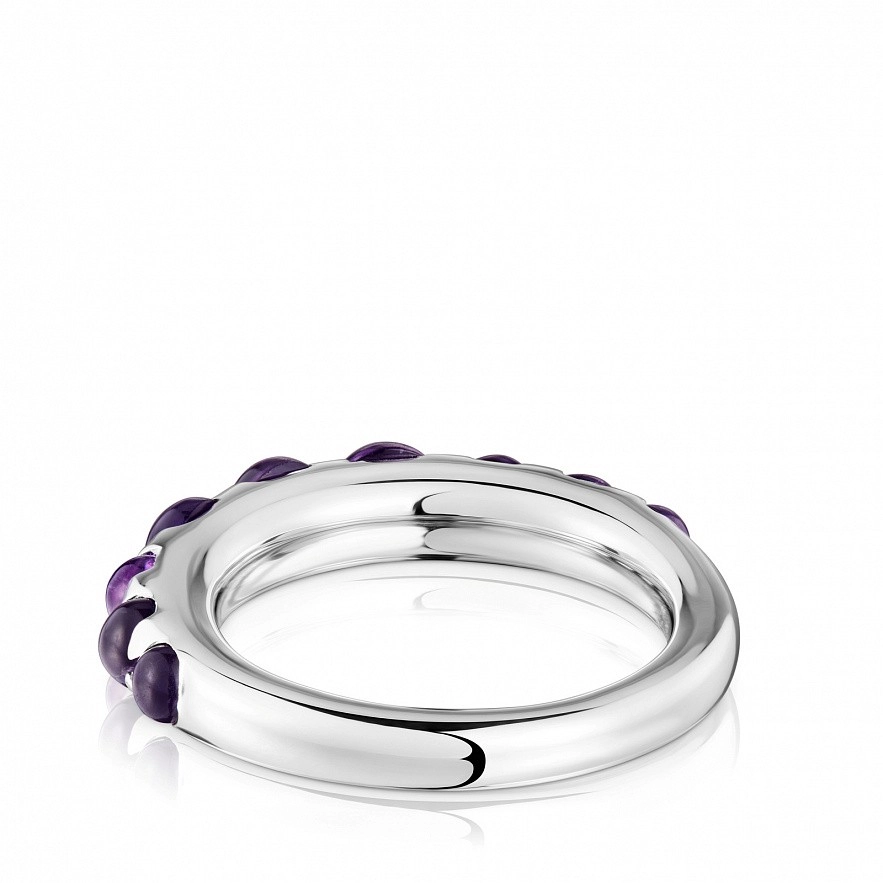 Каблучка TOUS Sugar Party зі стерлінгового срібла 925 проби з аметистом. Розмір дорогоцінних каменів: від 3 до 4,5мм. Ширина каблучки: 4мм. Товщина каблучки: 2,5мм.