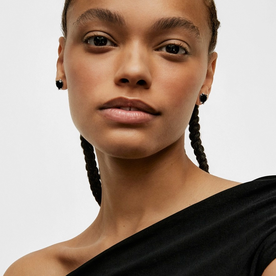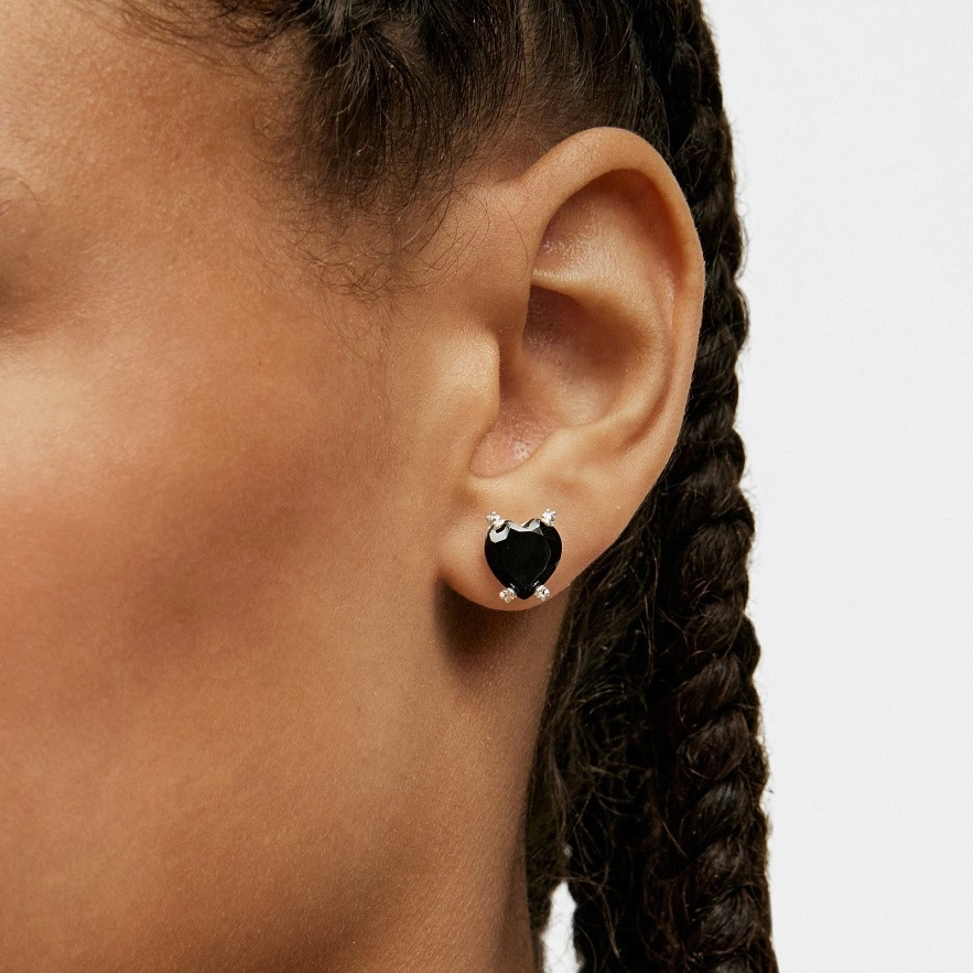 Сережки TOUS Color Pills зі срібла 925 проби та гранованого оніксу у формі серця. Розмір дорогоцінного каменю: 10,2 х 9,8 мм. Застібка-пусет.