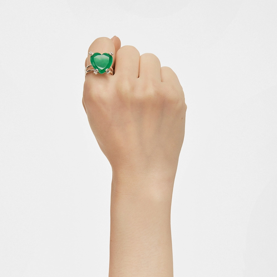 Каблучка TOUS Color Pills зі срібла 925 проби з огранованим зеленим халцедоном з серцеподібним огранюванням. Розмір каменю: 16 мм. Розмір ведмедика: 3.8 мм. Висота кулона: 10,2 мм.