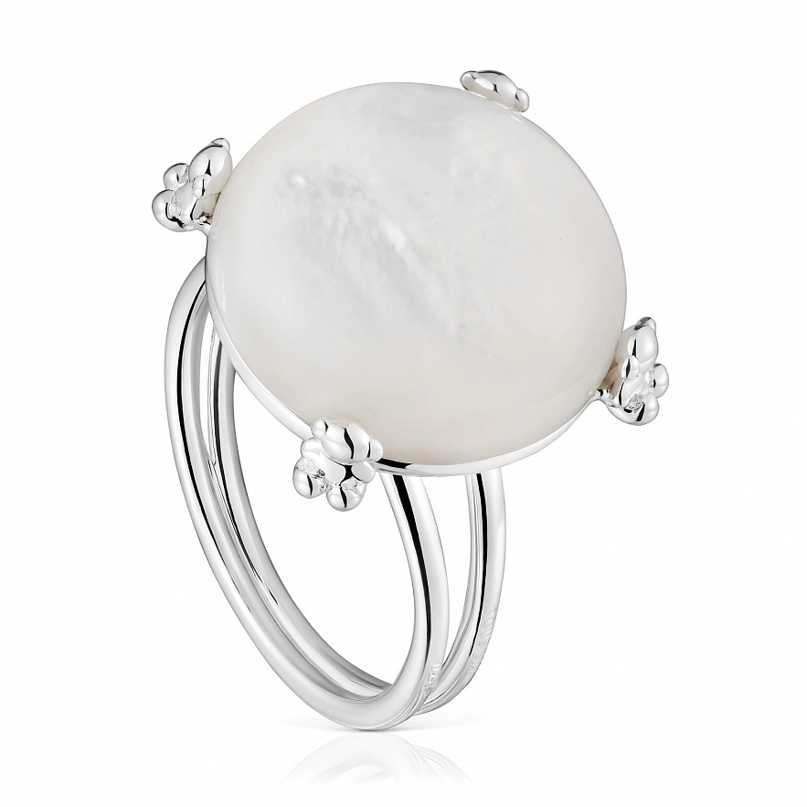 Каблучка TOUS Color Pills зі срібла 925 проби та перламутру круглої огранки кабошон. Розмір перламутру: 10 мм. Перламутровий камінь закріплений. Розмір перламутру: 16 мм. Розмір ведмедика: 3,8 мм.