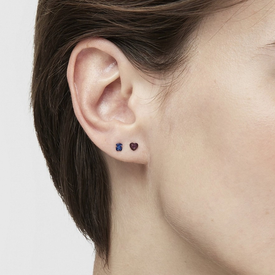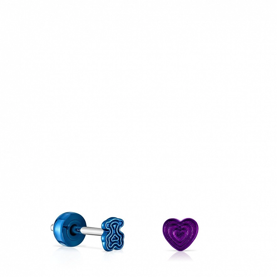 Набір з двох пірсингів для вух TOUS Bickie із фіолетової IP-сталі з сердечком і синьої IP-сталі з ведмедиком. Довжина стрижня: 10мм. Застібка-пусет.