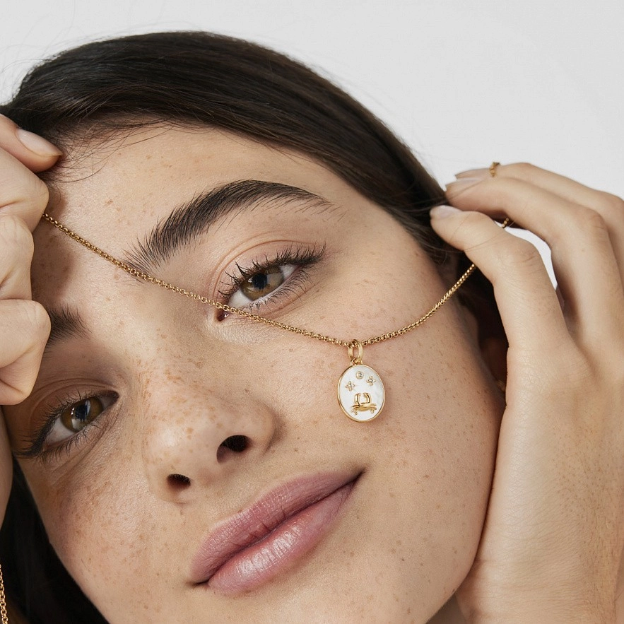 Підвіска TOUS гороскоп Рак зі срібної вермелі з перламутром і трьома топазами. На зворотному боці кулона гравірування сузір'я Великої Ведмедиці. Розмір топазу: 1,2 мм. Розмір підвіски: 14 х 12 мм. Цей товар не включає ланцюг.