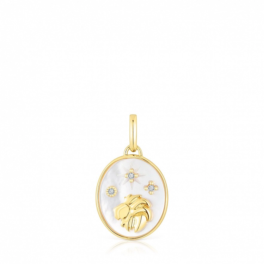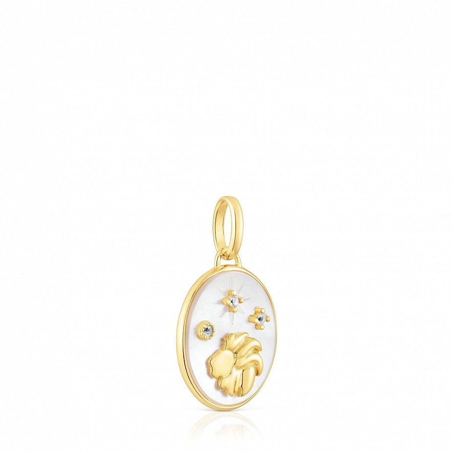 Підвіска TOUS гороскоп Лев з перламутром і трьома топазами. На зворотному боці кулона гравірування сузір'я Великої Ведмедиці. Розмір топазу: 1,2 мм. Розмір підвіски: 14 х 12 мм. Цей товар не включає ланцюг.