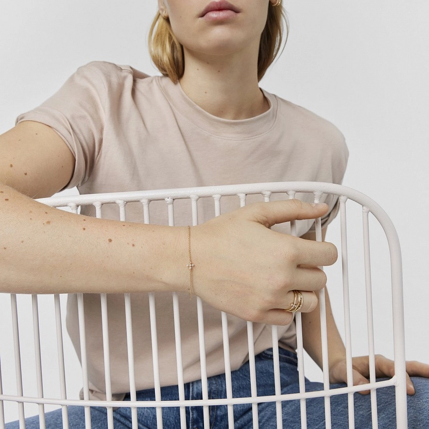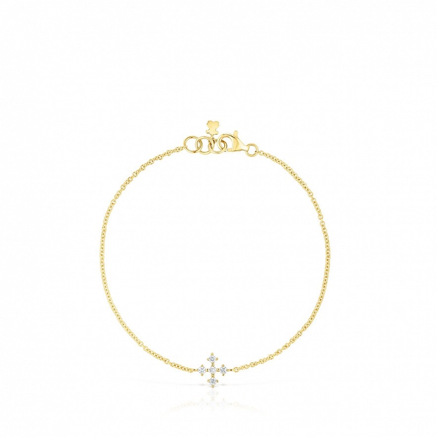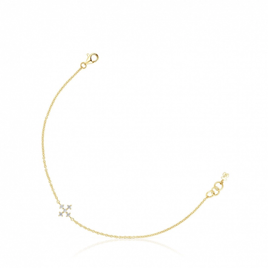 Браслет з хрестом TOUS Les Classiques із 18-каратного золота з п’ятьма діамантами з блискучим огранюванням загальною вагою 0,08 карата. Якість діаманта: H/SI. Довжина браслета: 17,5 см. Застібка лобстер.