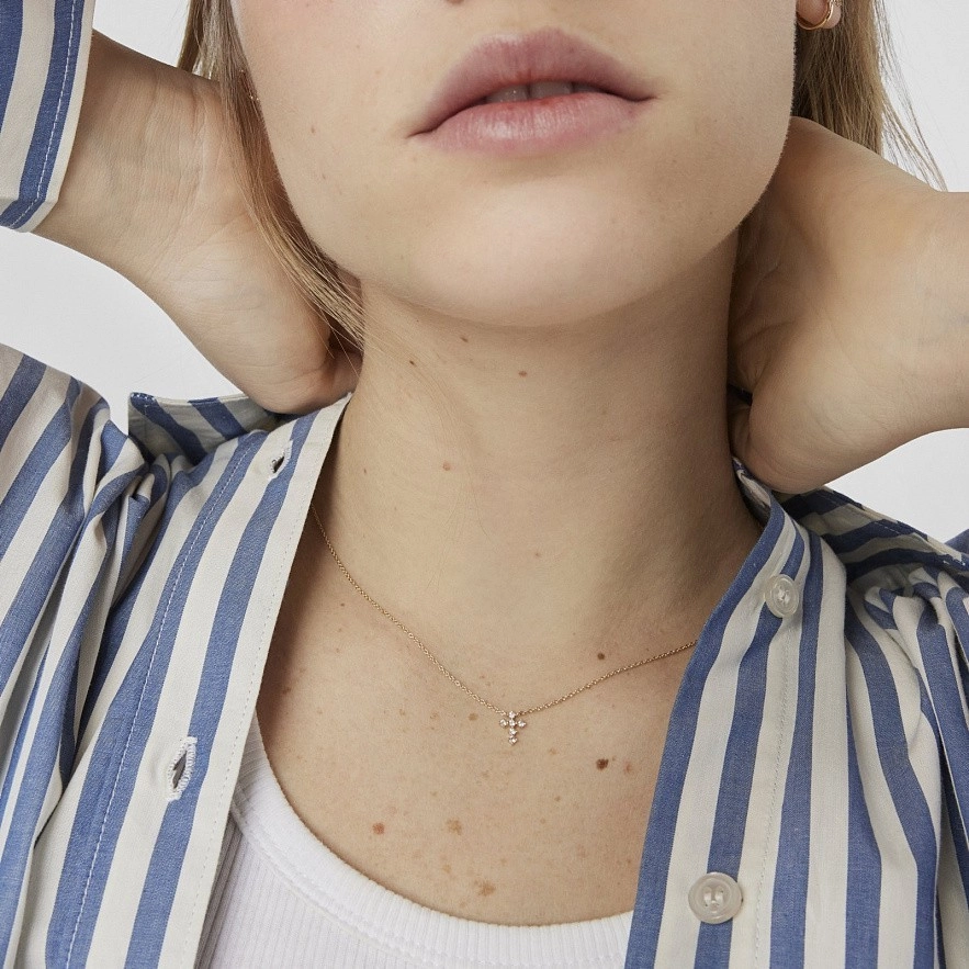 Намисто з хрестом TOUS Les Classiques із 18-каратного золота з шістьма діамантами з блискучим огранюванням загальною вагою 0,09 карата. Якість діаманта: H/SI. Довжина намиста: 42-45 см. Пружинна застібка-кільце.