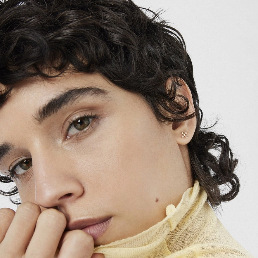 Сережки-хрестики TOUS Les Classiques із 18-каратного золота з діамантами 0,15 карата. Якість діаманта: H/SI. Застібка-пусет.