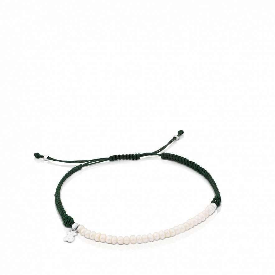 Браслет TOUS Color, зі срібла 925 проби з шнурком зеленого кольору, з перлиною 1,2-2 мм.