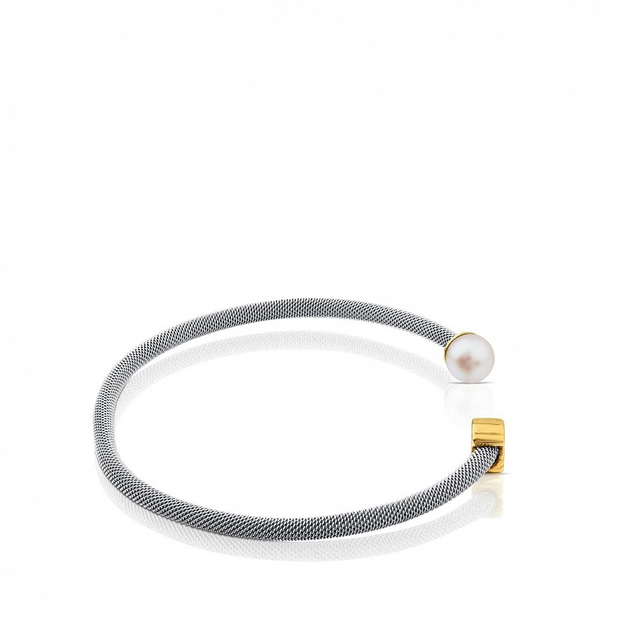 Браслет TOUS Icon Mesh з жовтого золота 750 проби та сталі з мішкою та перлиною. Розмір: 6,5 мм - 7мм.