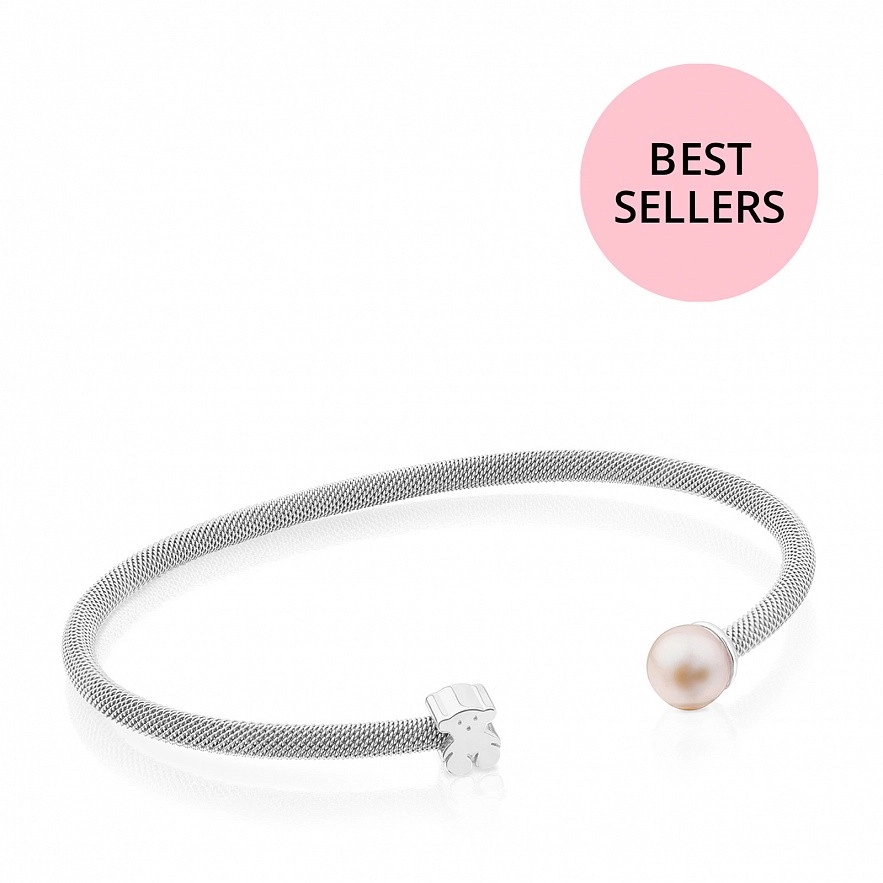 Браслет TOUS Icon Mesh, зі сталі та срібла 925 проби з перлиною.