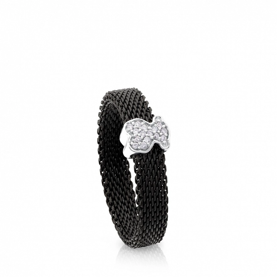 Каблучка TOUS Icon Mesh, з білого золота 18 kt та сталі з чорним іонним покриттям з діамантами. Загальна вага вставки: 0,04 kt. Розмір: 6мм.