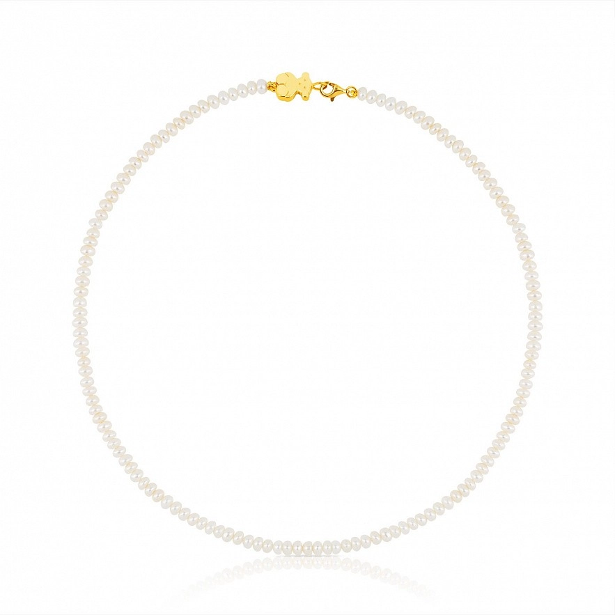 Намисто TOUS Sweet Dolls, жовте золото 18kt з 0.4 см культивованими перлинами. Довжина 44.5 см.