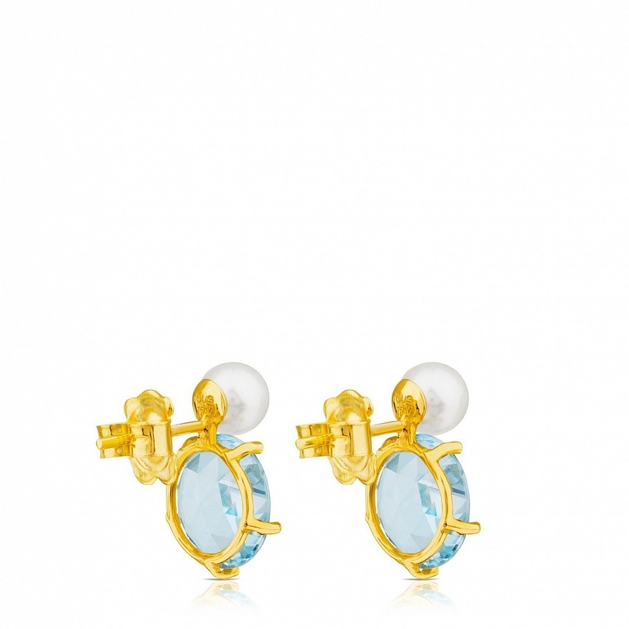 Сережки TOUS Ivette, із жовтого золота 18 kt, з блакитним топазом та перлиною. Розмір: 15 мм.