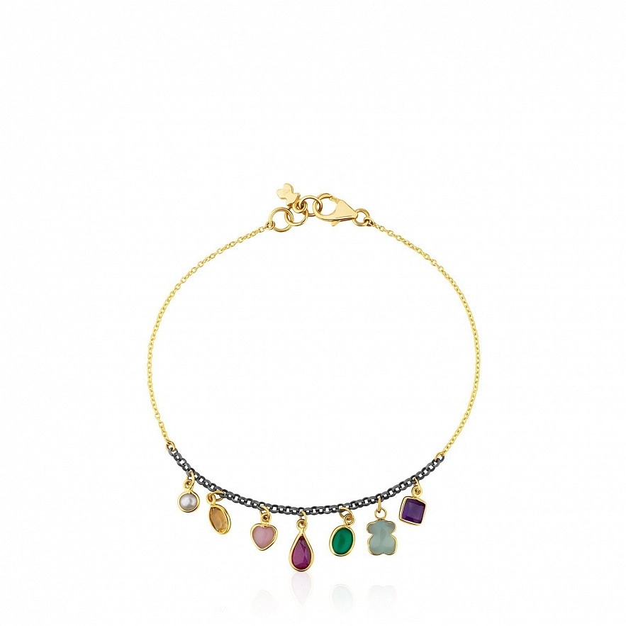 Браслет TOUS Gem Power з жовтого золота 750 проби та оксидованого срібла з рубіном, цитрином, рожевим кварцом, халцедоном, агатом, аметистом та перлиною. Розмір: 0,2 -0,55 см. Довжина: 17,5 см.