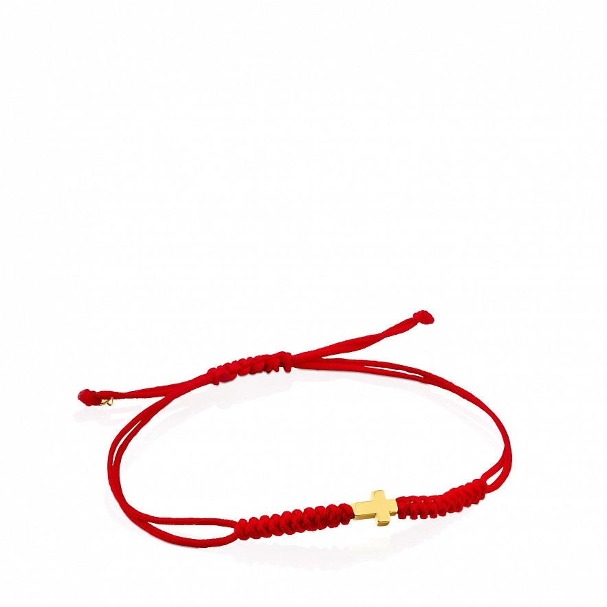 Браслет TOUS XXS із жовтого золота 999 проби з червоним шнурком та хрестиком. Розмір: 0,5 см. Довжина: 20 см.
