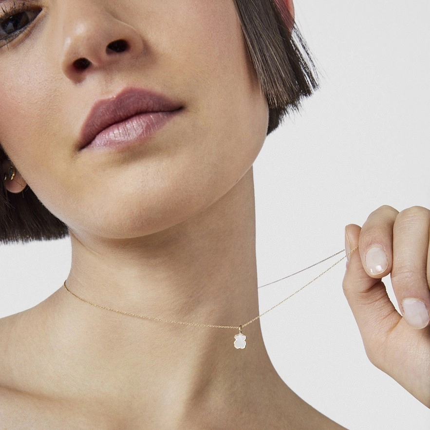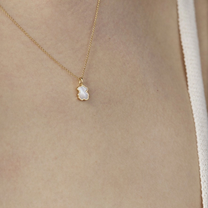 Ланцюг і кулон TOUS XXS, з жовтого золота 18 kt, з перламутром. Розмір: 0,7 см. Довжина ланцюга: 45 см.