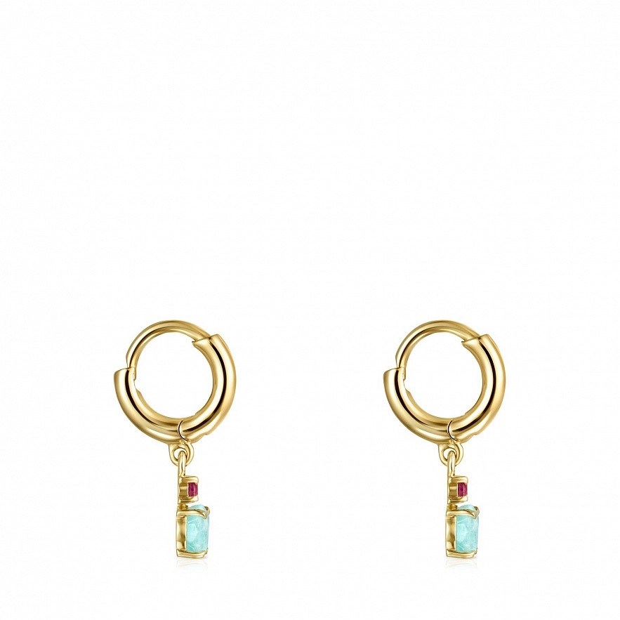 Сережки-обручі TOUS Mini Ivette з золота 18 каратів з амазонітом і рубіном. Каталонська застібка. Розмір: 0,6 см.