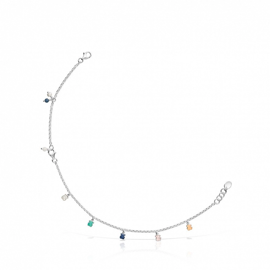 Браслет TOUS Mini Color зі срібла 925 проби з кварцом, демотор'єритом, амазонітом, перламутром та перлинами. Довжина: 17.5 см - 26 см.