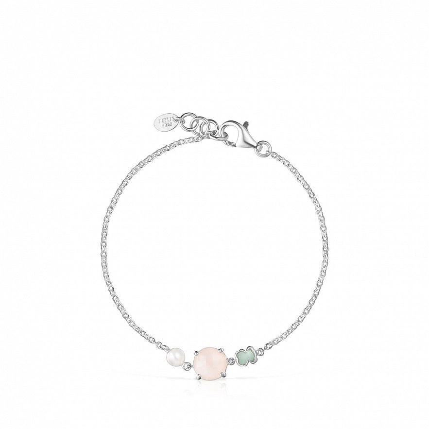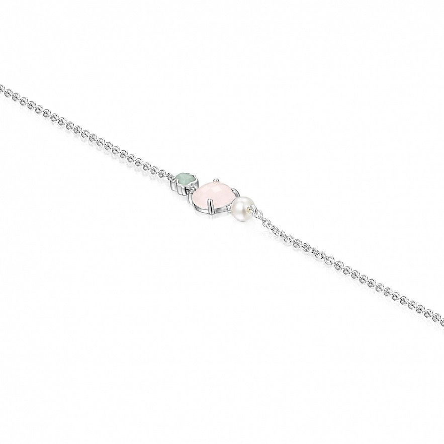 Браслет TOUS Mini Color, зі срібла 925 проби з рожевим кварцом, амазонітом і перлиною. Розмір: 0,3-0,8 см. Довжина: 17,5 см.